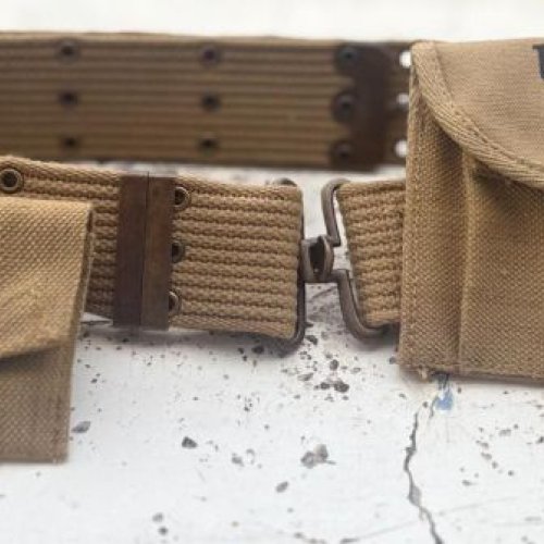 Ww2 Us American Webbing Khaki Pistol Belt with Crabine Pouch and First Aid Pouch